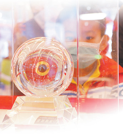 國家“十三五”科技創(chuàng)新成就展上展出的月球樣品。