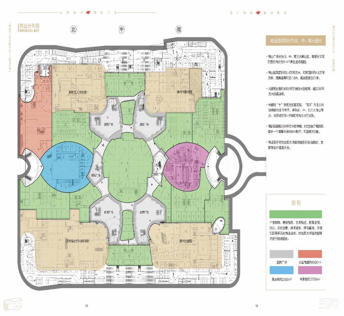 4.商業(yè)廣場概況:商業(yè)廣場位于泉州市公共文化中心中央核心區(qū)域,為四館公共文化功能發(fā)揮提供延伸配套服務(wù),擁有休閑旅游娛樂購物、文化展示交流互動及城市公共停車等多種復(fù)合功能,將休閑、娛樂、旅游、購物與公共文化反哺共享、有機融合。商業(yè)廣場建筑面積約17萬㎡,地上為露天廣場、交通道路及公共配套設(shè)施,地下兩層包含了商業(yè)、停車位約1780個及配套設(shè)施用房。其中,地下商業(yè)建筑面積約5.8萬㎡,預(yù)估可用面積約4.6萬㎡,層高最高可達7.8米,通道寬度達21米。