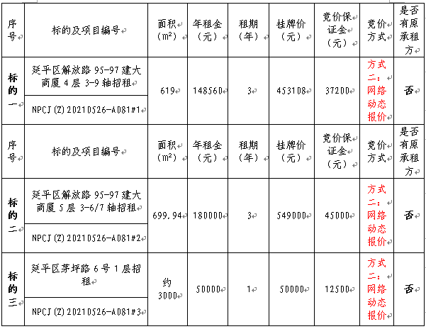 延平區(qū)解放路95-97建大商廈4層3-9軸、延平區(qū)解放路95-97建大商廈5層3-6/7軸、延平區(qū)茅坪路6號1層招租